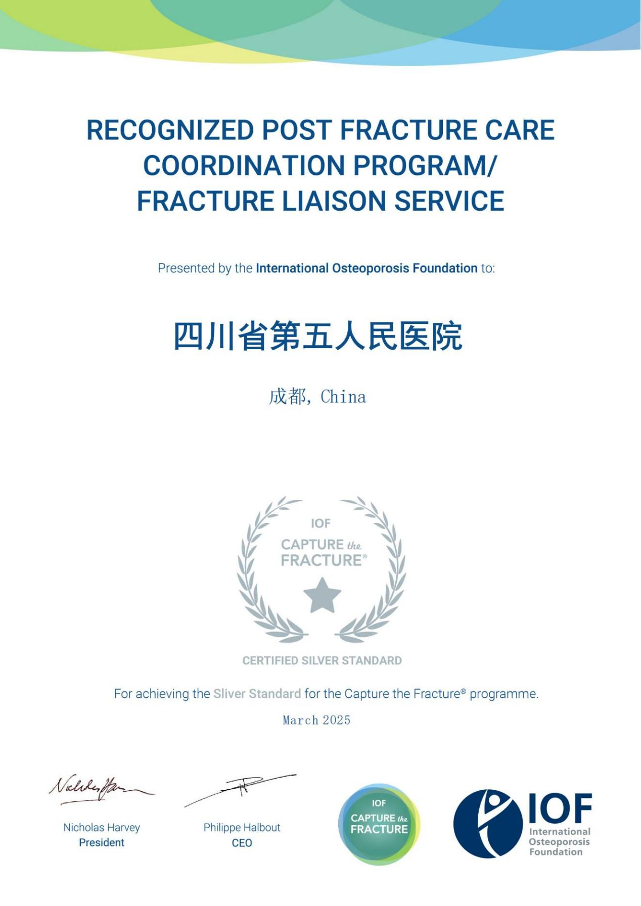 【喜讯】四川省第五人民医院荣获国际骨质疏松骨折联络服务最佳实践银牌奖